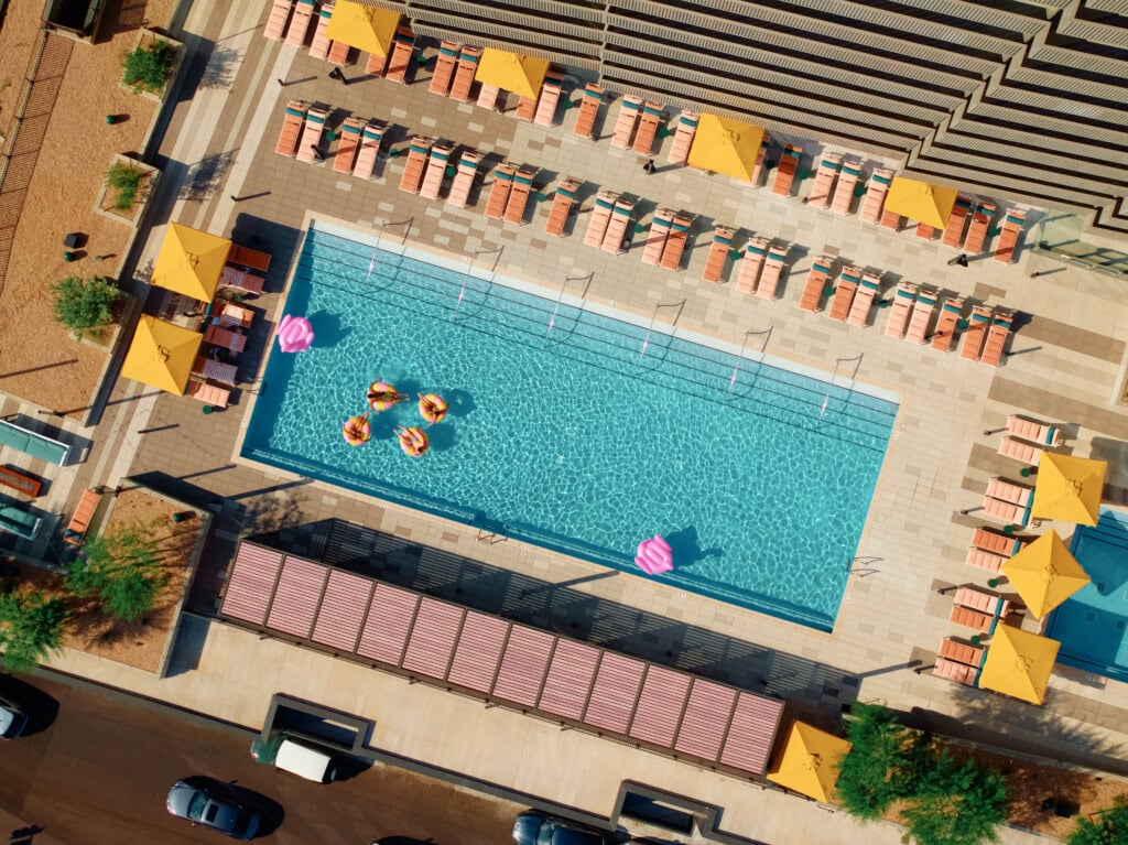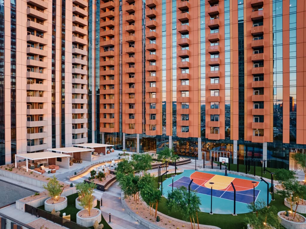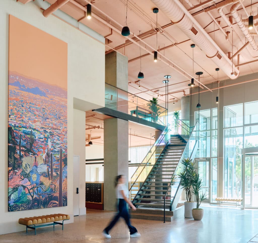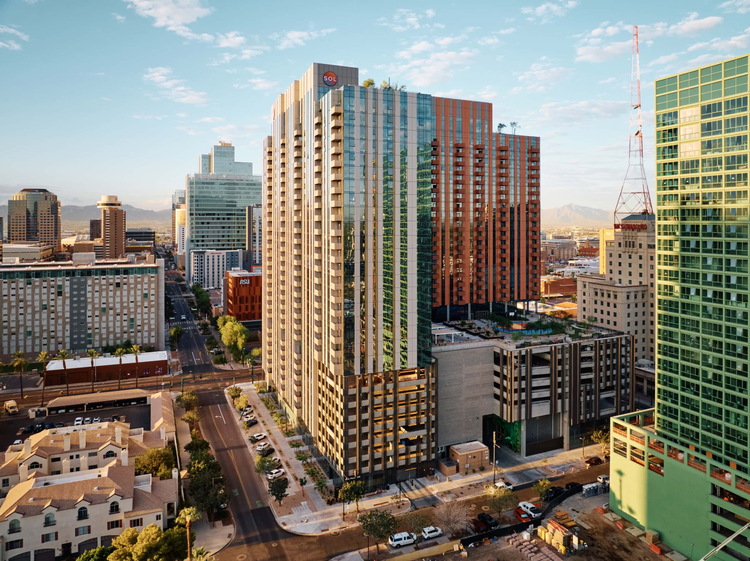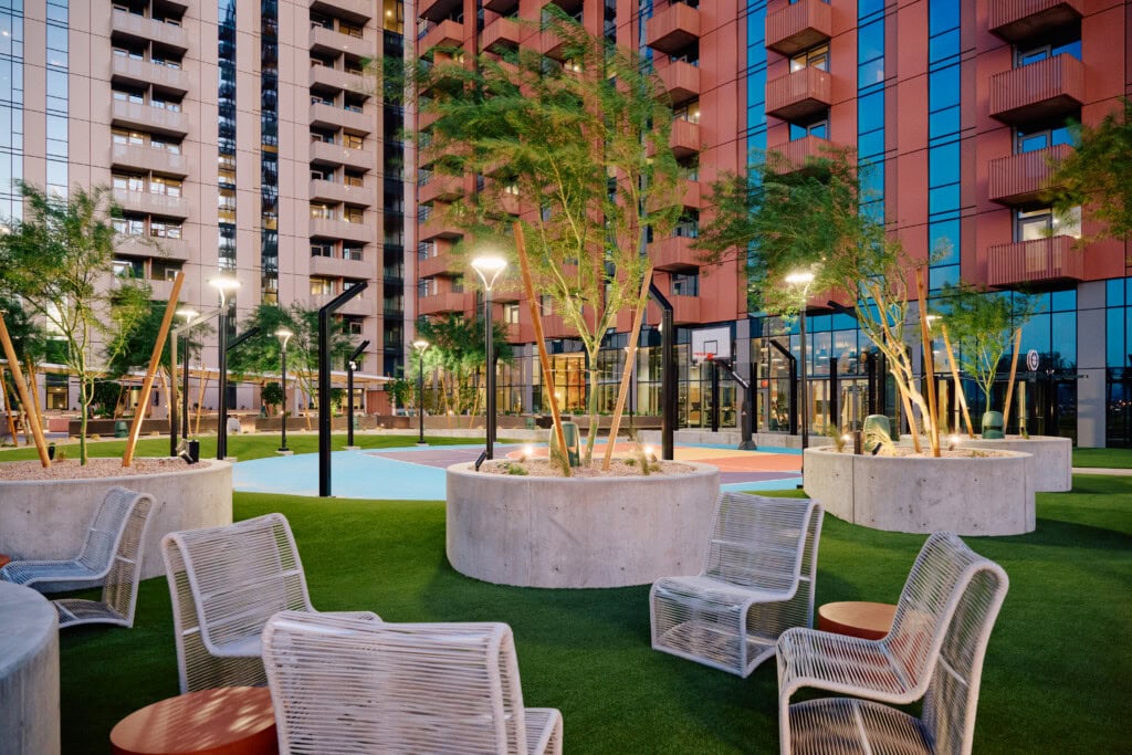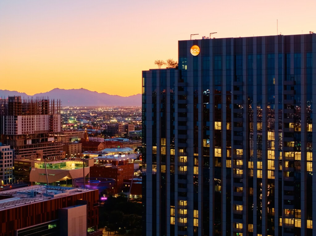 The 8th floor amenity deck will feature an outdoor lounge and kitchen, cabanas, spa, fitness turf area, half-court basketball, water features, citrus groves, and the largest multifamily pool in Phoenix. The 28th floor will feature a dog park, additional pool, spa, and rooftop greenery.
